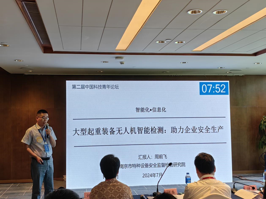 国家重大需求专题分论坛从前期1500名青年科技人才中遴选出14个省市近100名青年科技工作者参加现场论坛,与科协领导、两院院士、知名教授等领导专家相聚一堂,共同探讨科技前沿领域的最新成果,面向国家重大需求建言献策。南京市特检院周前飞博士受邀参加了此次论坛,并作了题为“大型起重装备无人机智能检测:助力企业安全生产”的展演报告。报告中详细介绍了市特检院科研团队无人机检测图像缺陷识别技术,展示了该技术通过工业CT扫描得到工件的连续断层图像,成功实现3D打印工件的裂纹、变形等缺陷识别的研究成果。南京理工大学陈光院士领衔的专家组对周前飞博士报告进行了现场点评指导。陈光院士充分肯定了起重机无人机检测的技术特色,评价“在表面缺陷检测方面做得很好,希望能继续研究,能应用于3D打印工件内部缺陷检测”。