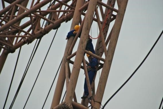 百米高的起重机上,检验人员系着安全带,在钢梁间攀爬,为能查清主梁下盖板、臂架、塔帽等关键部位和隐蔽结构处是否存在裂纹、缺陷,常常需要手持检验检测仪器,高空作业数小时——这就是传统大型起重机械检验的危险日常。