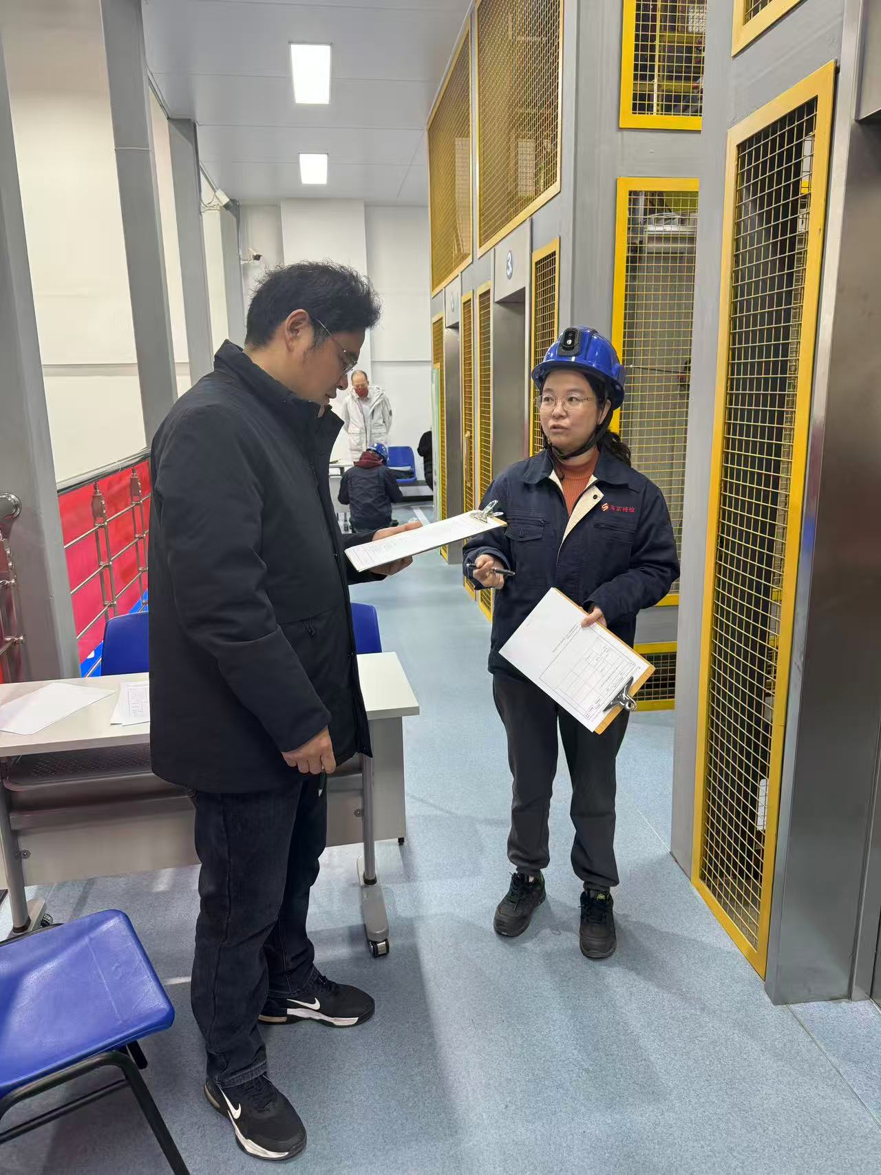 本次晋升考核坚持“理论与实践并重、能力与绩效挂钩”的原则,体系化设计考核内容。笔试部分聚焦特种设备相关法律法规、安全技术规范、检验检测标准及专业知识更新,强调对技术依据的理解深度与准确应用。现场实操考核则立足真实检验场景,模拟电梯、起重机械等常见特种设备的检测流程,采取口试、实操和填写检验原始记录相结合的形式,重点考察参考人员的检验检测和仪器操作规范性、数据判断准确性等。考评人员根据检验作业指导书和评分规范对每一位参考人员的考核情况进行评分。