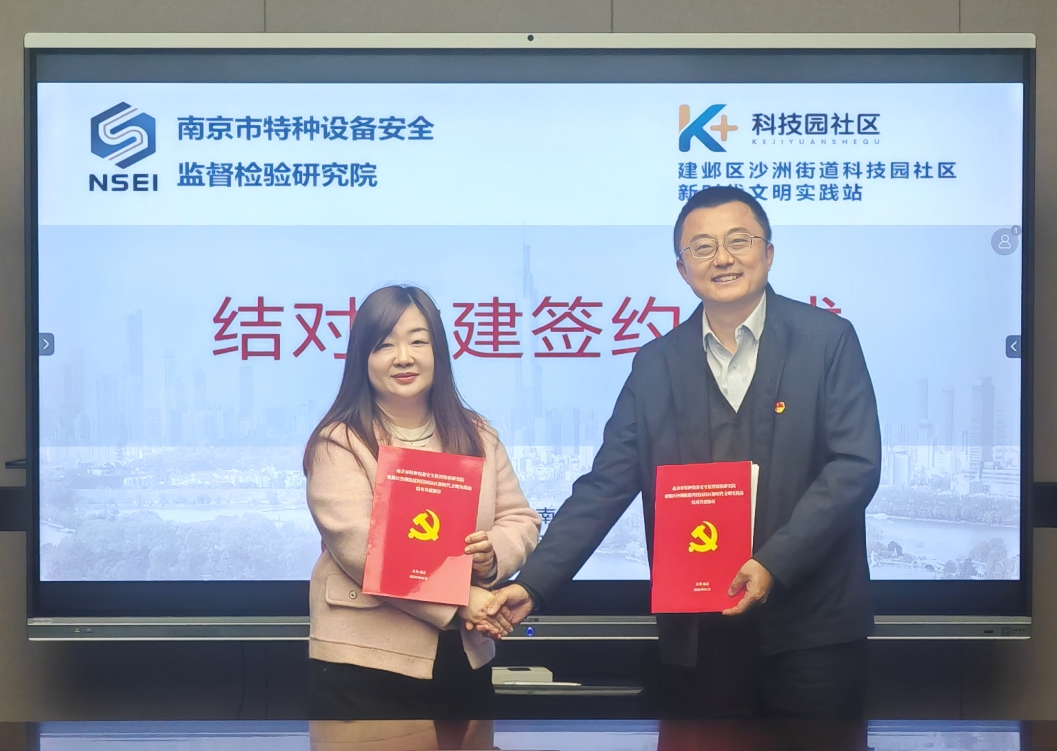 为充分发挥全国文明单位示范引领作用,深度融入基层文明实践阵地建设,南京市特检院与建邺区沙洲街道科技园社区新时代文明实践站开展结对共建签约仪式。市特检院党总支书记、院长丁树庆,副院长张军,行政与人力资源部部长;建邺区沙洲街道科技园社区党委书记、居委会主任王敏,社区党委副书记许俊及相关人员共同参加。